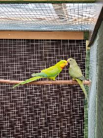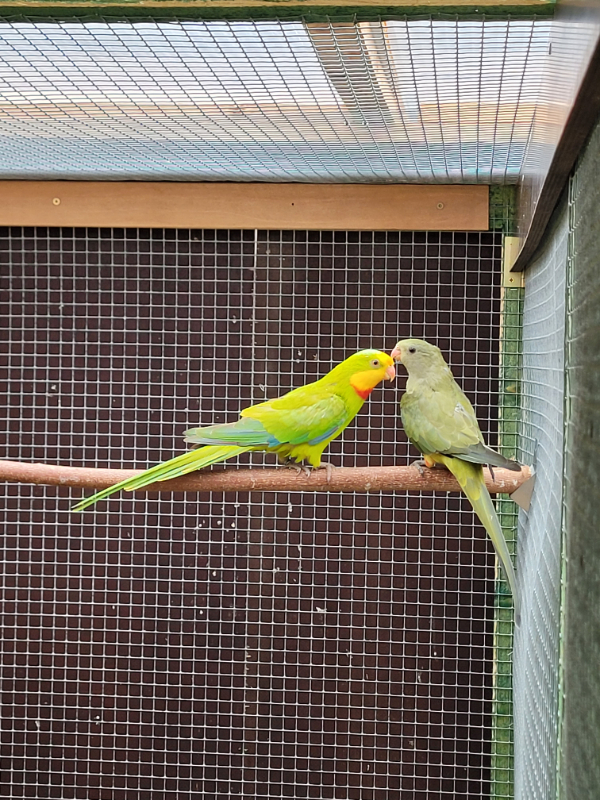 Vögel sind geschlossen beringt und werden in einer Außenvoliere gehalten.