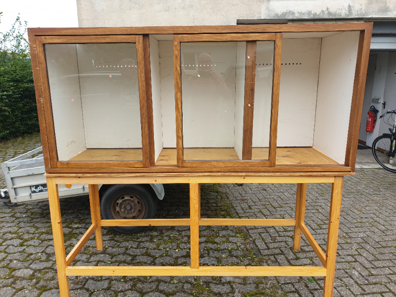 8 Ausstellungsvitrinen aus 10mm Sperrholz mit Glasfront.Komplett zerlegbar.Maße 2000mmx 0800mm x900mm . Können zweimal unterteilt werden.Auskünfte bei W.Dipper 0160 97313858