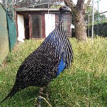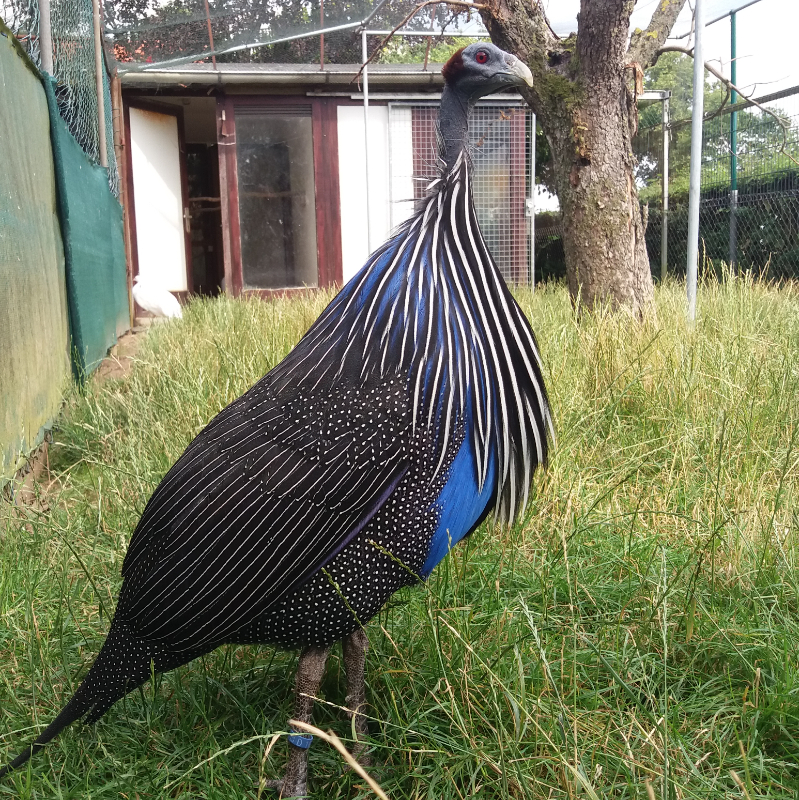 1,0 Geierperlhuhn ( Acryllium vulturinum) aus 2020 abzugeben. Mit Zehenfehler an einem Fuß hat aber gut nachgezogen.