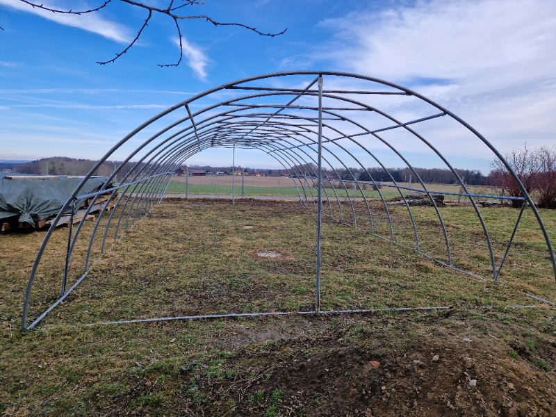 Verkaufe ein ungenutztes Metallgestell für ein Foliengewächshaus, Maße 12 x 6 x 2,45 m. Ursprünglich als Voliere gedacht, daher ohne Folie. Das Gestell ist noch originalverpackt und wurde nicht aufgebaut. Wir haben eines zu viel, deshalb geben wir eines ab. Aufgebaut sieht es aus wie auf dem Bild. Ideal als Gewächshaus, Voliere oder Unterstand.
