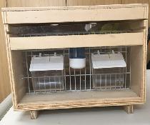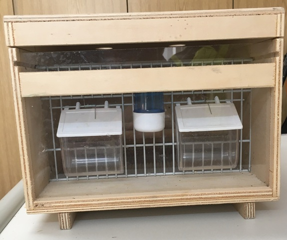 Futter ist in 2 Becher und Wasser in einer Tränke, somit bleibt alles sauber.