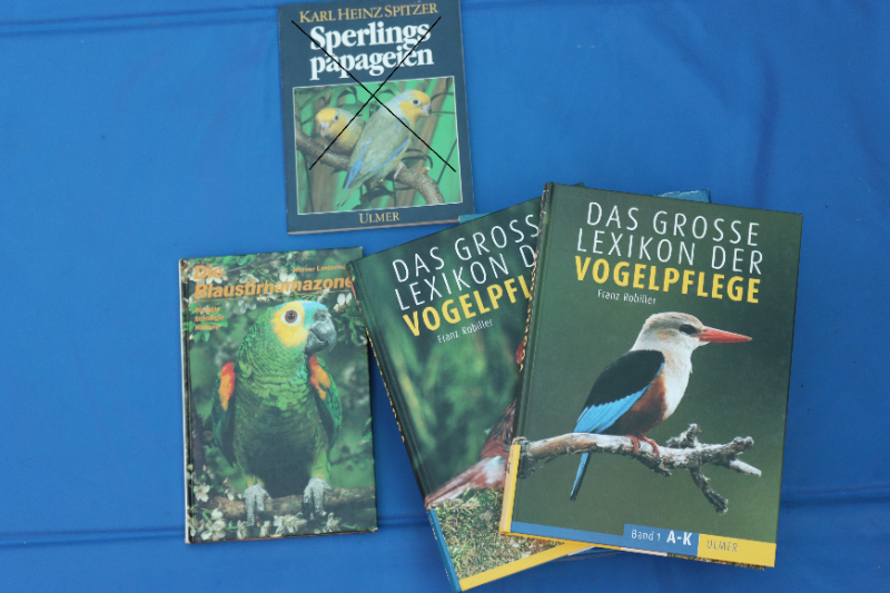 Gebe folgende Bücher ab: Die Blaustirnamazone von Werner Lantermann für 15 Euro, Das große Lexikon der Vogelpflege Band 1 und 2 im Schuber von Franz Robiller für 25,00 Euro. Die Bücher sind in einen guten Zustand. Versand ist gegen Vorkasse möglich. Auch ein Tausch gegen Südamerikanische Zeisige / Kanarien oder Prachtfinken ist möglich.