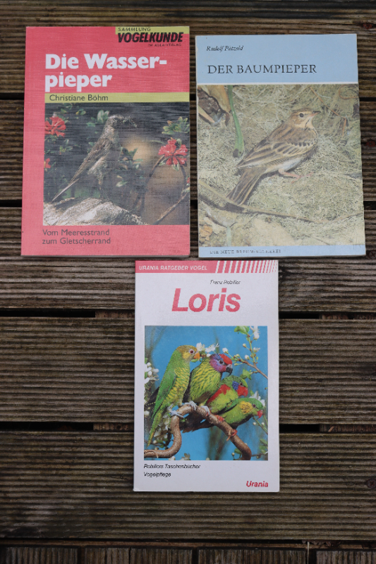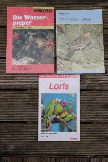 Gebe folgende Bücher ab: Der Baumpieper von Rudolf Pätzold (Neue Brehm Bücherei) 5 Euro, Die Wasserpieper von Christiane Böhm (Aula Verlag) für 5 Euro, Loris von Franz Robiller (Urania Verlag) für 5 Euro. Die Bücher sind in einen sehr guten Zustand. Versand ist gegen Vorkasse möglich. Auch ein Tausch gegen Südamerikanische Zeisige / Kanarien oder Prachtfinken ist möglich.