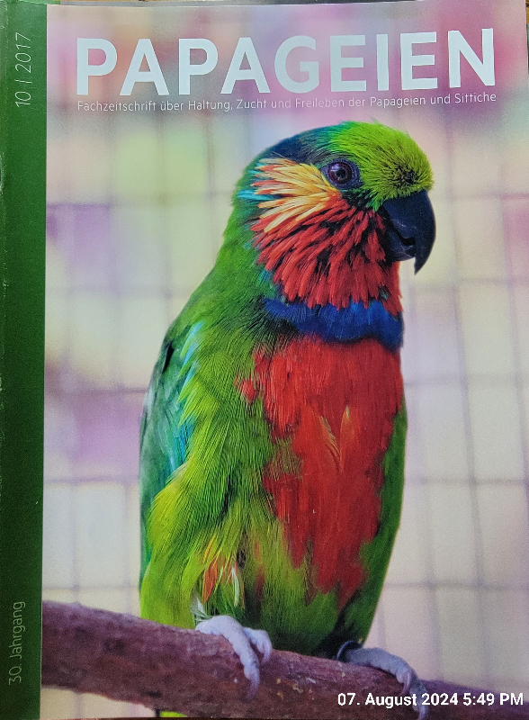 Zeitschrift PAPAGEIEN vom Arndt-Verlag, komplette Jahrgänge 2015 – 2019, 12 Ausgaben pro Jahrgang, Preisvorstellung 25 € pro Jahrgang. Gesamtabnahme = 110 €.