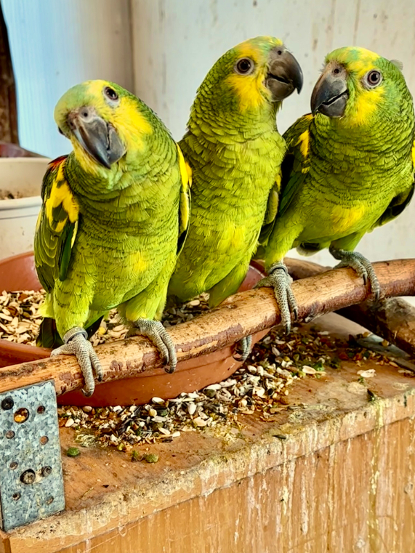 2,2 Gelbflügel Blaustirnamazonen von 2025 aus sehr guter Blutlinie, geschlossen beringt, Naturbrut bis 6 Woche. Sehr große und kräftige Vögel. Kein Versand.