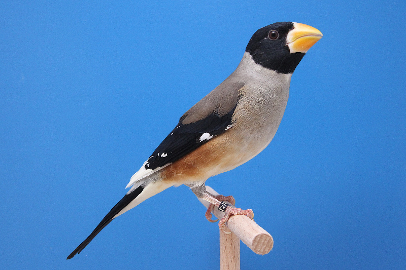 1,0 Schwarzschwanzkernbeißer, (auch Weishandkernbeißer genannt; Eophona migratoria migratoria), AZ-Ring 2025.