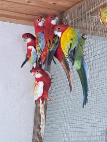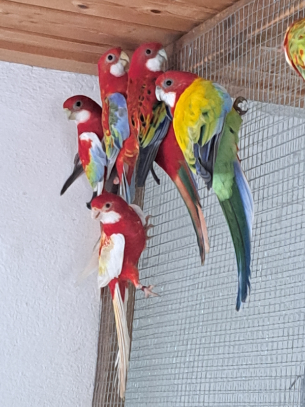 10 Rosellasittch in Wildfarben Rosellasittche in Goldengold, Opalin, Pastell Verdacht spalt Blau von 2025.