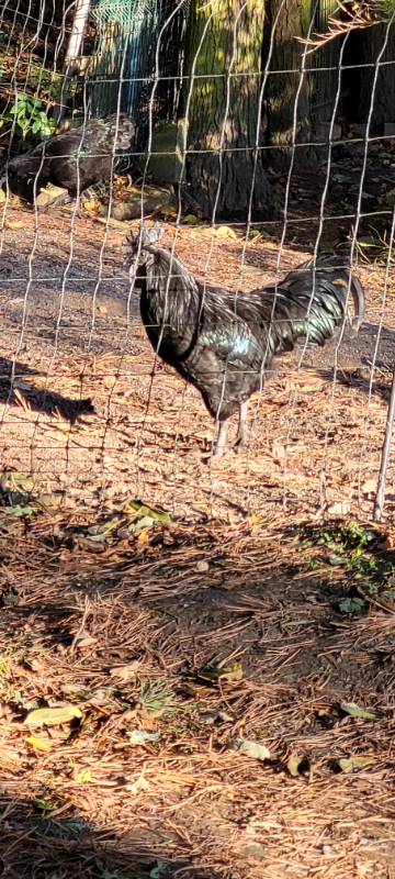 1 schwarzen Hahn jetzt einjährig abzugeben da unser Haupthahn ihn nicht mag. Und ehe es zu Verletzungen kommt, geben wir ihn lieber in eine neue Gruppe Damen.