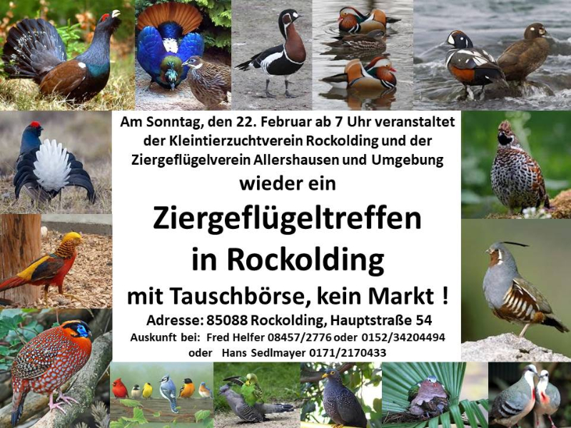 Bin am kommenden Sonntag beim Ziergeflügeltreffen in Rockolding