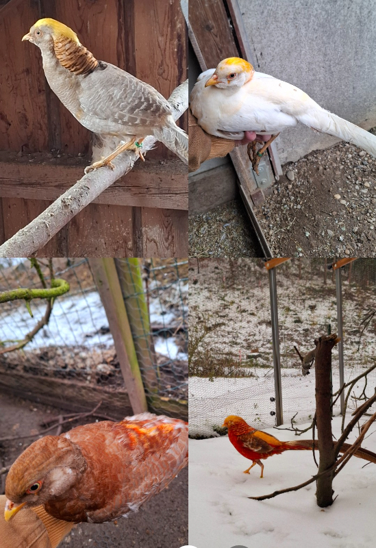 verkaufe verschiedene Farbmutationen und Scheckungen von meinen Goldfasanen