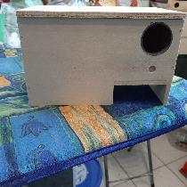 Einflugloch mit Kantenschutz aus Kunststoff.