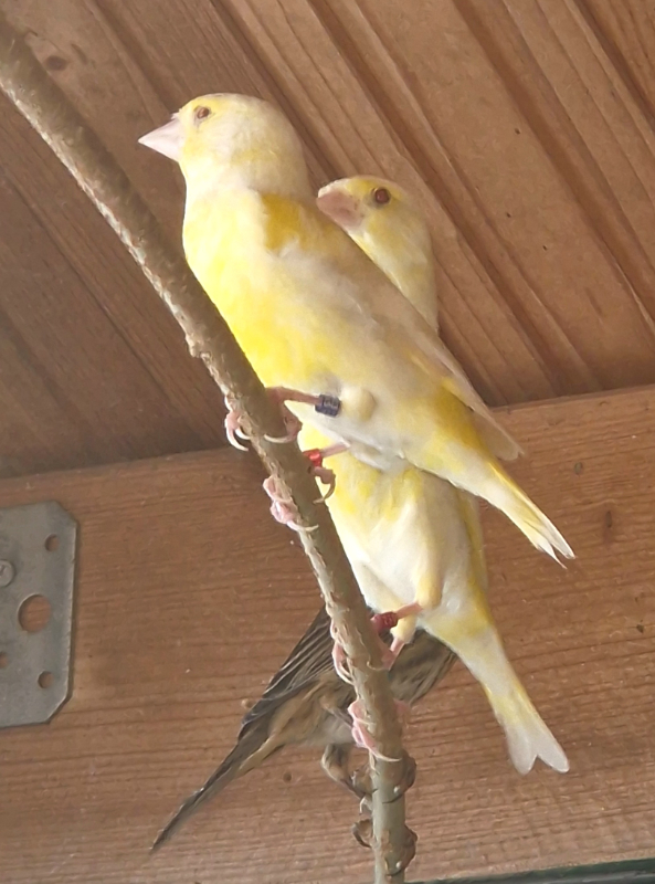 Grünfinken Pärchen i lutino. Geschlossenen beringt mit Holländischen Ring. Ruhige Grüße Vögel. Nur selbst abholen.