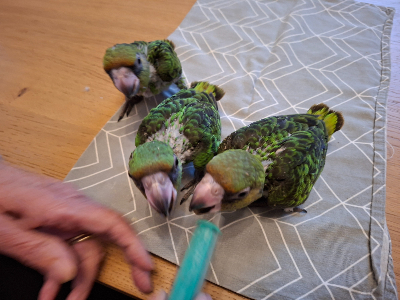 Handaufgezogene männliche Jungtiere vom Dez. 2025.