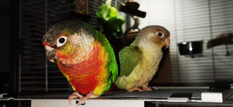Biete ein Pärchen Grünwangenrotschwanzsittiche an. 3 Jahre alt und unzertrennlich. Teilzahm. Türkis-Zimt-Opalin Henne. Wildfarbig-Opalin Hahn.