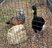 Biete noch 1.0 Tuberkehlhokko (Crax Rubra) in der gestreiften Form aus 2025. Das Tier hat einige weiße Federn im Bauch Bereich und ist von einem reinen gestreiften Paar.