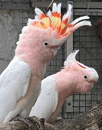1,0 Rosakakadu, lutino, Handaufzucht von diesem Jahr, recht großer Vogel, nicht sehr zahm, sitzt mit mehreren zusammen |