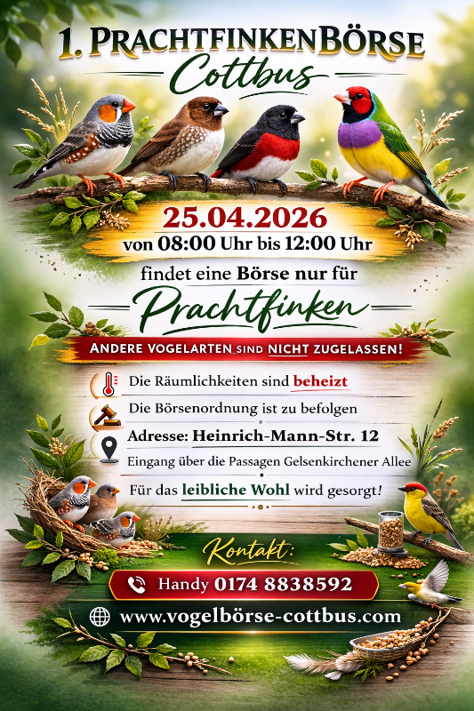 Die erste reine Prachtfinkenbörse Deutschlands findet im Dreiländereck Cottbus statt |