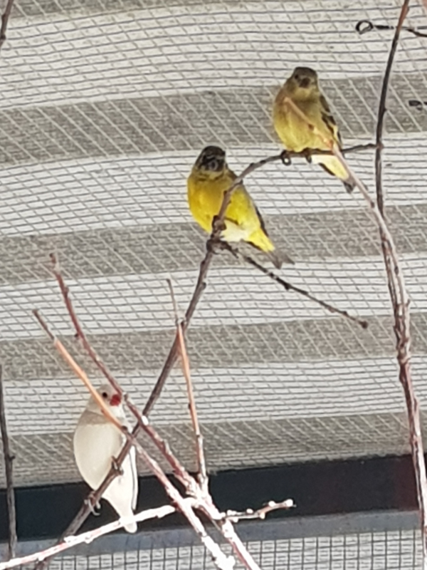 2/5 Kapuzenzeisig pastell, 2/2 Kapuzenzeisig Natur, 3/1 Yarellzeisig aus Nachzucht 2025 und geschlossen beringt. Bin am 06.01 in Ried. |